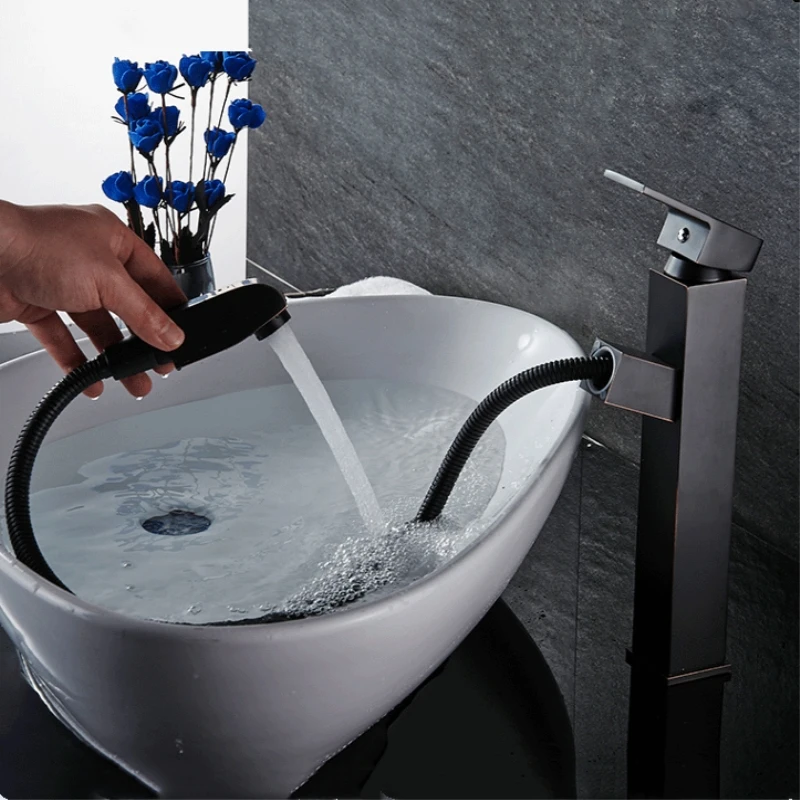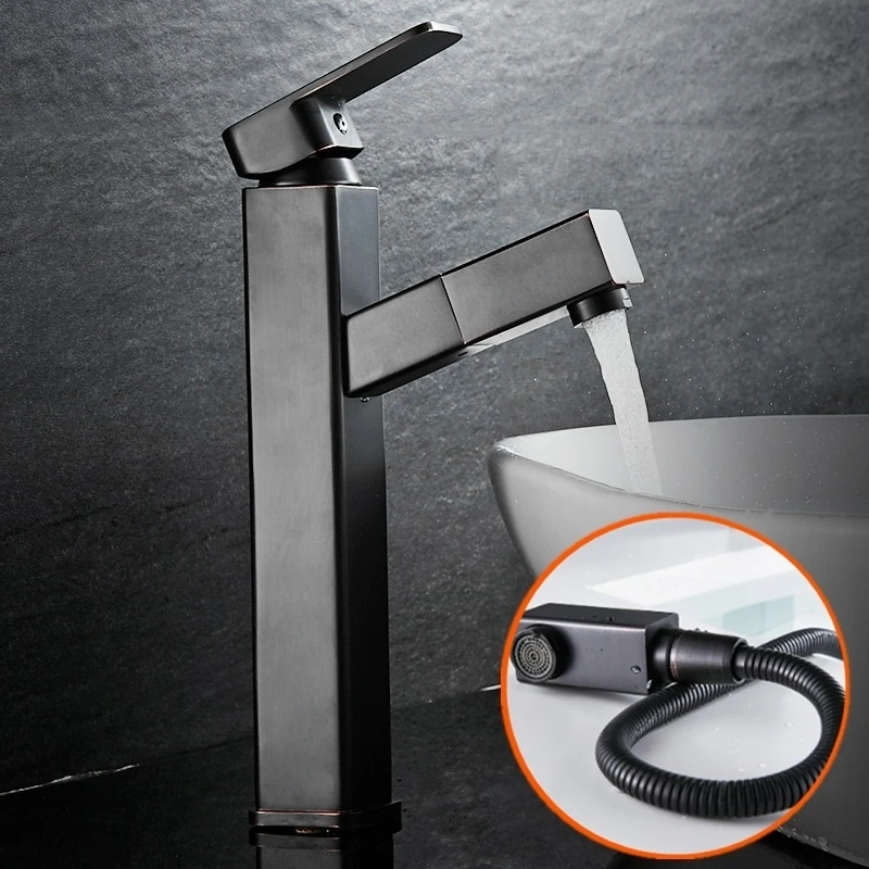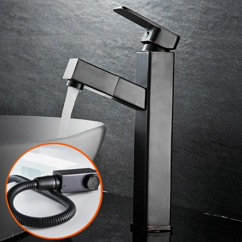 .Images for Basin Faucets Hot and Cold Water Pull Out Swivel Bathroom Sink Tap Single Handle Sink Faucet Brass Wash Basin Mixer Tap