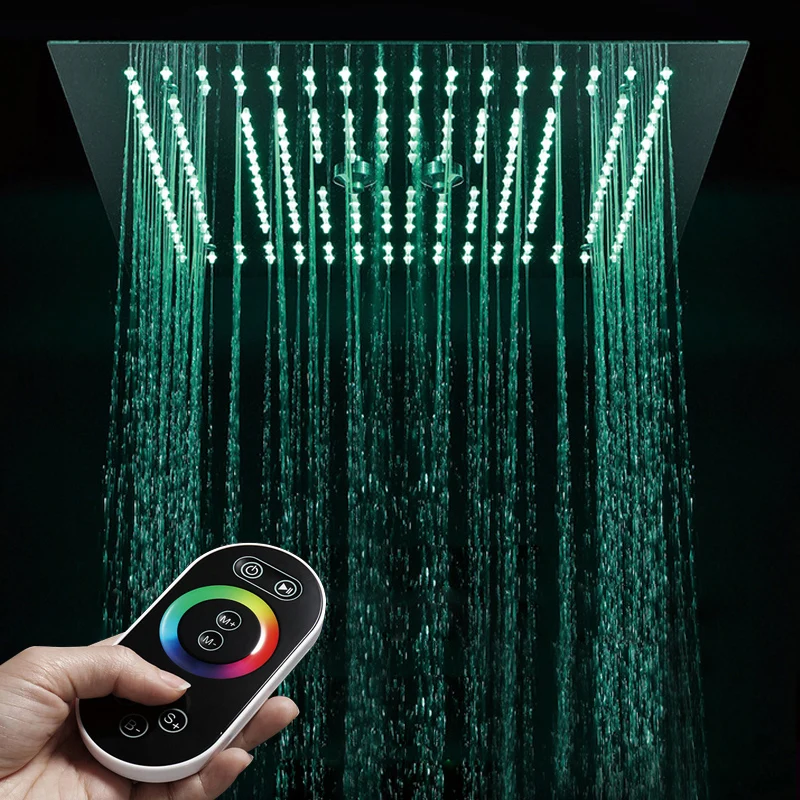 Offer Description of Modern Bathroom Shower Head Stainless Steel 16" Rain Shower Head Rainfall Shower Misty Ceiling Remote Control LED Light Heads